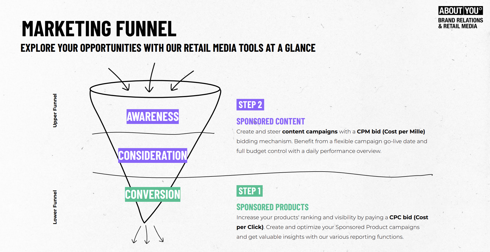 [**Sign up**](https://share-eu1.hsforms.com/1NqAQQfXITvu5VK5LD9g4Wg2c2t09) for our Retail Media Newsletter and our Sponsored Products & Sponsored Content Newsletter to receive news, opportunities and information about upcoming events in and around ABOUT YOU!&#x20;